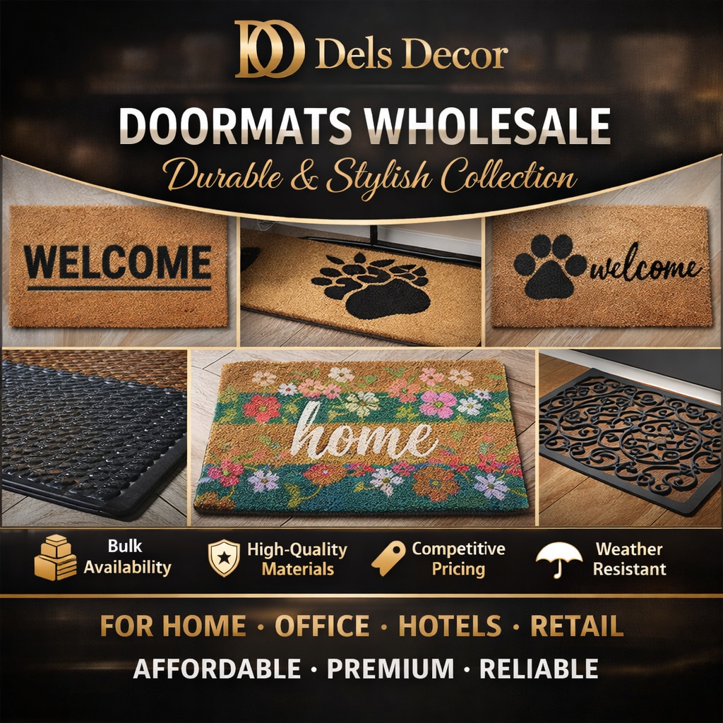 Doormats Wholesale – Durable & Stylish Collection by Dels Decor Dels Decor offers a premium range of doormats wholesale, designed to combine functionality, durability, and modern aesthetics. Our wholesale doormats are ideal for retailers, interior stores, builders, hotels, offices, and large commercial projects. Our collection includes coir doormats, rubber-backed mats, anti-slip doormats, printed doormats, designer entry mats, and heavy-duty outdoor mats. Manufactured using high-quality materials, Dels Decor doormats provide excellent dirt-trapping, moisture absorption, and long-lasting performance. As a trusted doormat wholesale supplier, we ensure bulk availability, consistent quality, and competitive pricing. These mats are easy to clean, weather-resistant, and suitable for homes, apartments, offices, hotels, showrooms, and retail entrances. Choose Dels Decor for affordable, premium-quality doormats wholesale in India, crafted to enhance entrance appeal while maintaining hygiene and safety.